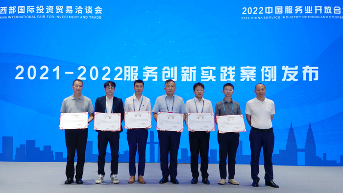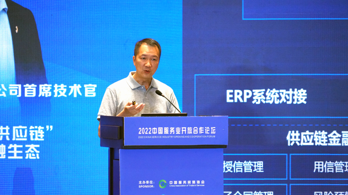 7月22日,第四届西洽会在重庆拉开序幕。作为西洽会的重要活动之一,2022中国服务业开放合作论坛同步举行。重庆市委常委、副市长陈鸣波,商务部原副部长房爱卿,中国服务贸易协会副会长兼秘书长仲泽宇等重要领导,以及国内外相关领域专家、研究机构和企业界代表约200人出席论坛,就“以更高水平开放 促进服务业高质量发展”主题,展开了深入探讨。开鑫科技CTO胡汉光受邀出席并发表主题演讲,与政、产、学、研各界共话数智化供应链金融发展新趋势。会上,开鑫科技“X-LINE供应链金融服务平台”还荣获“2021-2022服务创新实践案例”大奖。