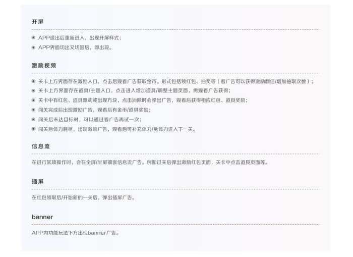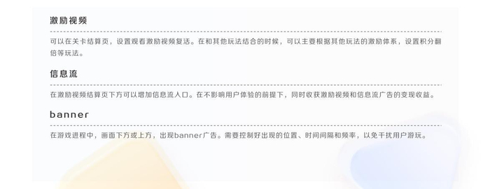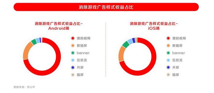消除游戏广告变现同样以激励视频为主,占比超过七成,新插屏、banner 、信息流等样式构成补充。