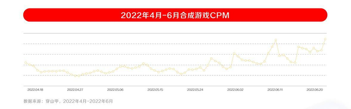 商业化:合成游戏在商业表现方面处于中上水平,随着超休闲化发展和厂商广告变现策略的加强,品类商业潜力逐步释放。根据穿山甲数据,自2022年4月以来,合成游戏的CPM一直保持快速增长。
