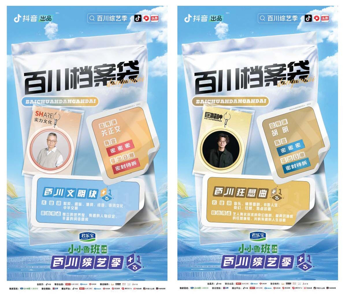 由抖音出品,北京卫视、河南卫视,江苏卫视联合出品的君乐宝小小鲁班儿童奶粉独家冠名、立邦联合赞助的《百川综艺季》,集结国内六大知名制作团队打造出6档子节目《百川文明诀》《百川可逗镇》《百川乐时空》《百川老朋友》《百川狂想曲》《百川高校声》。