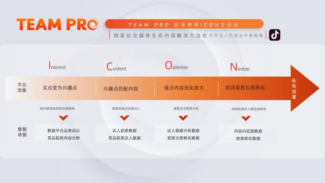 我们选择用微盟TEAM PRO抖音ICON方法论进行验证。首先通过人货场三要素找到切入点,基于过往的数据营销经验,列出第一批预设的核心人群,即学生党、新锐白领和产后妈妈,打造贴合其需求的货品利益点,同时,由于发现在某顶级抖音运动博主的健身视频中有使用该品类的产品,我们还大胆介入之前未曾被很好注意到的运动场景。内容产出上,基于抖音兴趣电商的特性,我们以抖音4T吸引力原则(ATTRACT-吸引力、 TRUST-信任力、TEMPT-诱惑力、ACT-行动力)创作内容,4T法则有着标准化、流量化的优势,是已被验证的KOL效果广告创作方法论。