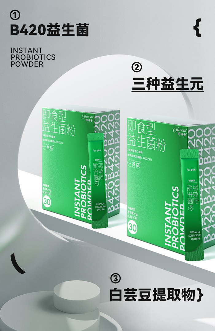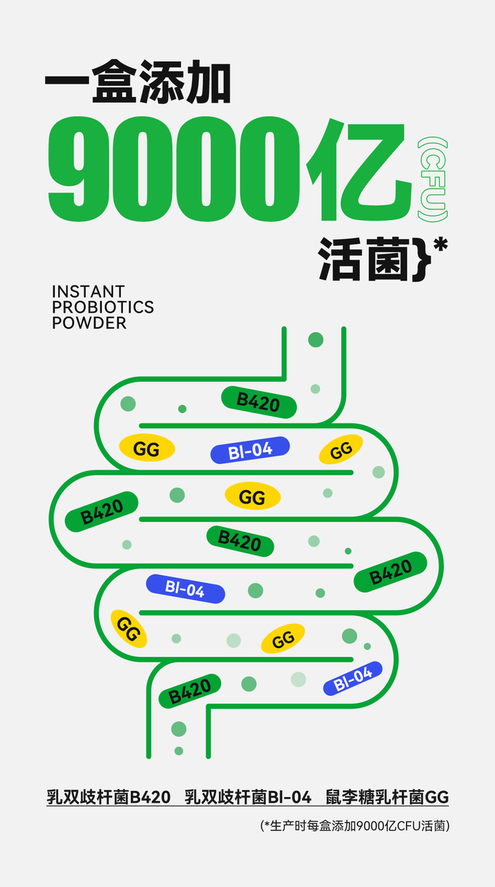 基于此,保持肠道菌群平衡,确保肠道功能在线是很重要的一环,而维系肠道菌群平衡离不开益生菌的帮助。益生菌是对人体健康有益的活菌,它可以起到调节肠道菌群平衡,抑制致病菌的增殖,促进肠道消化吸收等作用,帮助肠道新陈代谢助力排毒。选择一款适合的益生菌,无疑会让营养吸收、消化代谢变得更轻松,比如一家益家族的新成员:B420即食型益生菌粉。