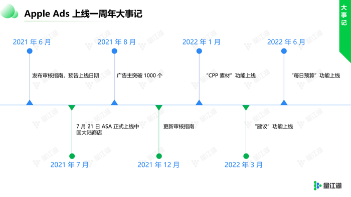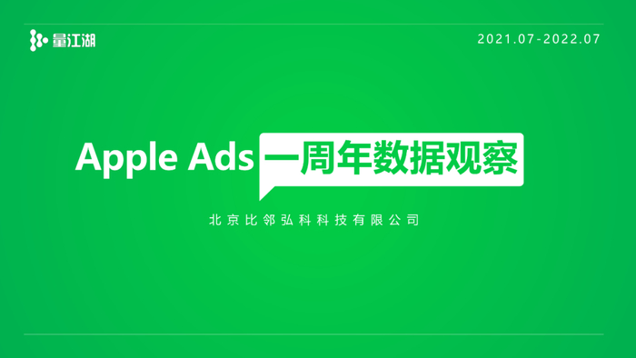 2022年7月21日,苹果广告国内上线一周年之际,量江湖正式推出《Apple Ads一周年数据观察》特别报告,如下图。