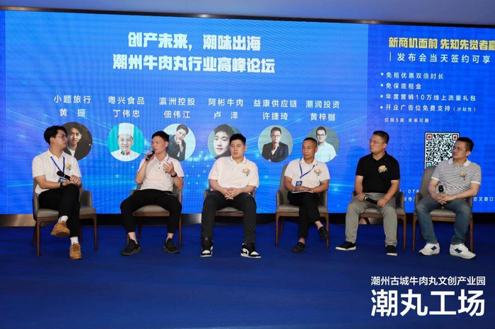 为了更好地促进产业集聚,加强行业交流,活动设置了“创产未来·潮味出海”潮州牛肉丸行业高峰论坛环节。广东瀛洲控股集团有限公司董事长兼总经理佃伟江、粤兴食品创始人丁伟忠、潮州市阿彬餐饮管理有限公司品牌策划总监卢泽、福建益康供应链管理有限公司品牌中心总监许捷琦、小题旅行科技福建分公司副总经理黄振、潮润投资创始人黄梓樾进行了深入的探讨,聚焦产业升级、创新发展,以国有企业、餐饮企业、供应链企业、内容创作企业、资本投资等多元视角的分享,为潮州牛肉丸产业未来的发展提供了借鉴和启发,提振了市场主体的投资信心。