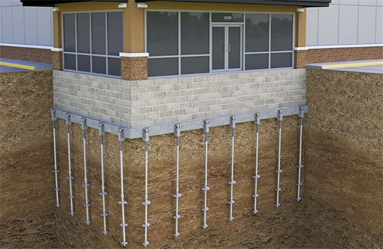 等螺旋锚钻到承重层的时候,在智能数据监测系统中显示的承重达标了。这时候就可以套上桩帽,连接上千斤顶,把下降的地基抬升到指定的位置并且进行固定,然后把千斤顶撤下就可以了,在别的地基下沉处也统一这种施工方法,下沉的地基就可以完美的修复了。