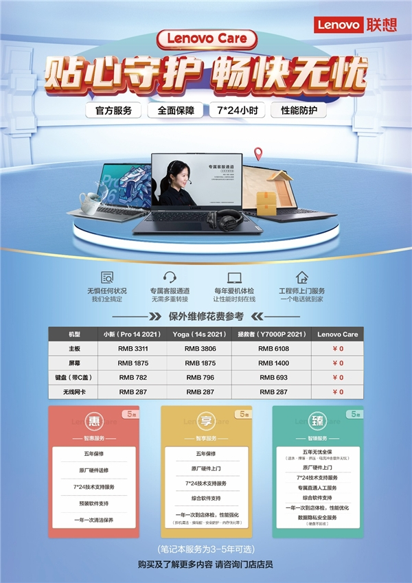 当下多款Lenovo Care新品正在促销,联想线下门店的暑期大促自然也少不了Lenovo Care的身影。作为全面完善消费者使用体验而推出的服务组合型产品,Lenovo Care服务组合适用于联想多品类产品。在Lenovo Care上市前,消费者在挑选服务产品时需要分别去了解和购买单项服务产品。而Lenovo Care服务组合直接包含了如工程师上门、每年爱机性能防护、意外保,以及7*24小时人工技术支持、综合软件支持、数据安全服务等多项消费者需要的单品服务,消费者仅需购买一款Lenovo Care,即可享受多项优质服务,整体性价比更高,服务体验更大幅提升。