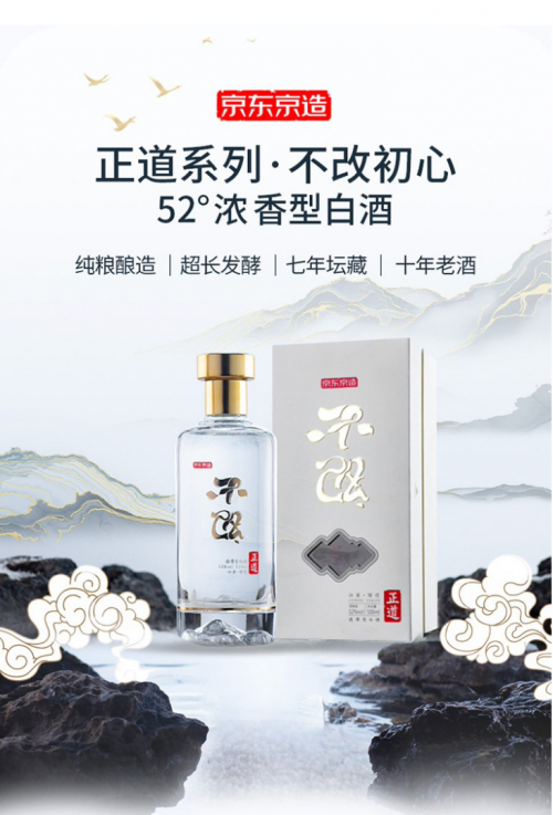 以正道行者为起点,京东京造的白酒产品矩阵逐渐拓宽,另一款浓香型—— “初心不改”白酒也在不久后问世。