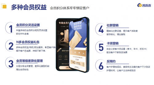 关于锁客,丰富多样的会员积分规则体系灵活设置,自由组合多种锁客卡项自定义设置,精细化社群运营工具,有效提高客户活跃度,留存转化,增加复购,让锁客更简单。关于升客,精准的客户画像消费轨迹,客户开单信息/标签喜好/到店频次/消耗情况/消费能力,一目了然,准确挖掘潜在及优质客户,实现精准营销,让升单更简单高效。