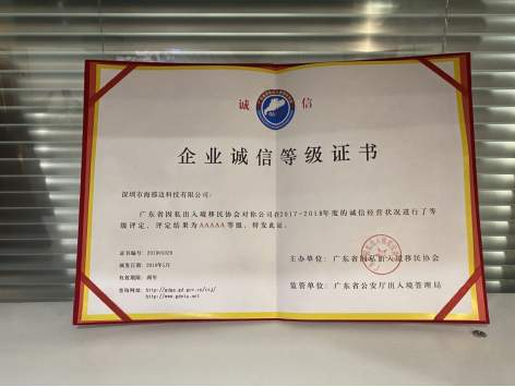 获得过:国家高新技术产业、深圳市高新技术产业、广东省因私出入境移民协会 “第三届理事会会员单位”、广东省因私出入境移民协会 “企业诚信等级5A级企业”、腾讯云 “粤港澳大湾区互联网创新榜20强”、中国财经峰会冬季论坛“2019年度创新引领奖”、百度金熊掌 “深圳优秀入围应用奖”等荣誉。