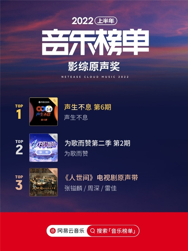 网易云音乐2022年半程榜单发布,声声不息为歌而赞等上榜