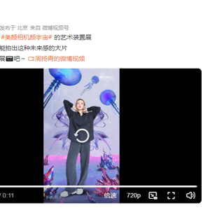 美颜相机还邀请周扬青作为“颜宇宙特邀体验官”,打卡颜宇宙艺术装置展,并在社交平台晒出了看展打卡照,并称呼“万万没想到手机也能拍出这种未来感的大片”。
