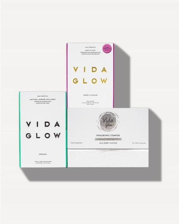 为了有针对性地解决消费者具体需求,Vida Glow已打造出丰富、全面的口服美容产品线。包括被称为“抗老三剑客”的三大基础管理方案:海洋胶原蛋白、抗糖抗氧闪释粉和玻尿酸口服液,它们可以深入真皮层由内而外补充胶原蛋白,改善环境和不健康生活习惯导致的过早衰老等皮肤伤害,并为皮肤持续补充水分。
