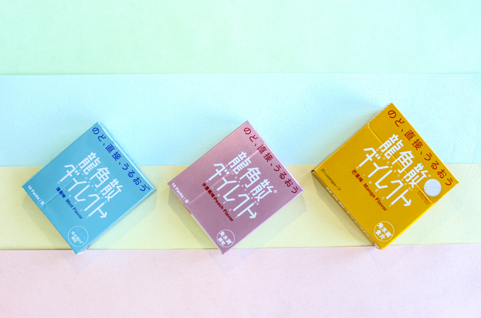 该系列产品有蜂蜜柠檬味、荔枝薄荷味、草本抹茶味三种口味。蜂蜜柠檬味添加清凉微粒,入口更清爽;荔枝薄荷味有淡淡的荔枝清香,适合喜欢轻甜口感的人群;草本抹茶味特别添加AVSS健康成分,护嗓又护身。