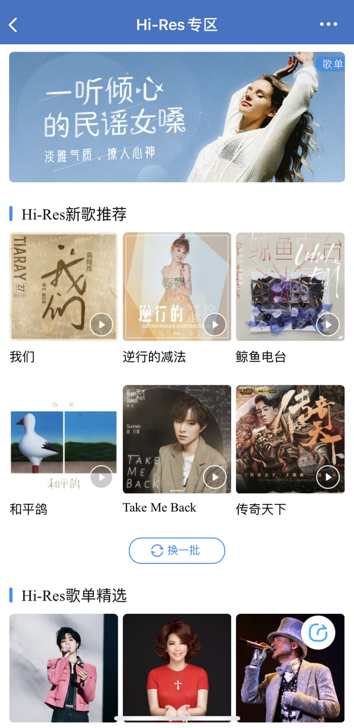 酷狗率先推出Hi-Res高解析曲库,截止目前已经囊括了800万Hi-Res热门经典曲目,覆盖了英语、日语、粤语、国语等多语种,不仅包括张学友、周杰伦、陈奕迅、林俊杰、梁静茹等各大流行天王天后的Hi-Res音乐,还有蔡琴、江智民、龚玥、孙露等发烧人声试音大碟,以及脍炙人口的欧美大咖Taylor Swift、Mariah Carey和Beatles的音乐,为乐迷提供了多元化的音乐选择,解决高品质音乐资源匮乏的难题,为追求极致的乐迷打造一场音乐盛宴。