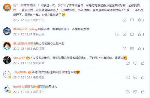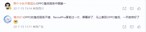 根据前排网友的评价反馈,不难看出大部分人都对OPPO手机服务给予了肯定,像是其中一位网友就表示,原本手机坏了很生气,但打电话过去之后,服务人员不仅教他预约还一直安抚他,过去就能直接维修,而且维修完还给他换了手机膜,手机也做了清理,直言“跟新的一样,心情立马就好了”。可见,OPPO的售后维修服务还是十分贴心的。