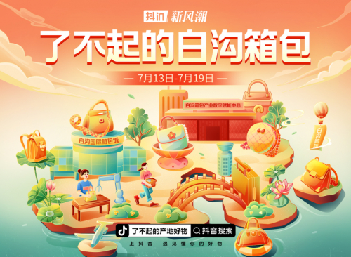 2021年以来,白沟箱包产业集群在抖音电商高速增长,2022年5月销量较去年同比增长超过100%。7月13日-7月19日,“了不起的白沟箱包”专项活动期间,带动白沟当地超过1.5万个商家参与,销售额破亿。