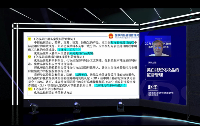 北京工商大学化学与材料工程学院化妆品系主任赵华发表《美白祛斑化妆品的监督管理》主题演讲。解读美白淡斑市场最新监管,分析美白淡斑市场政策要点。