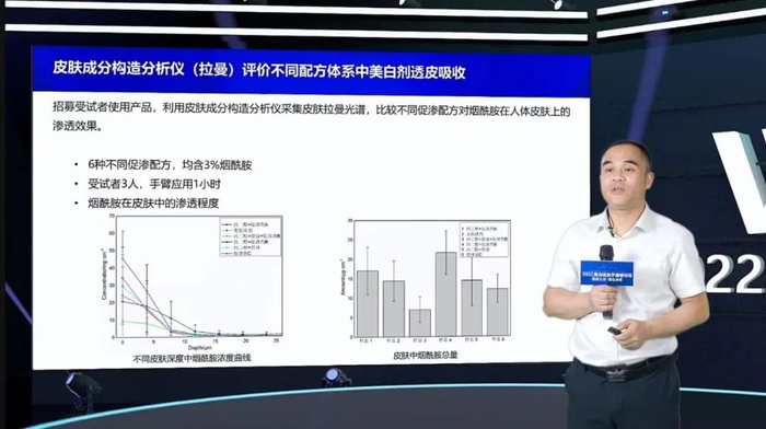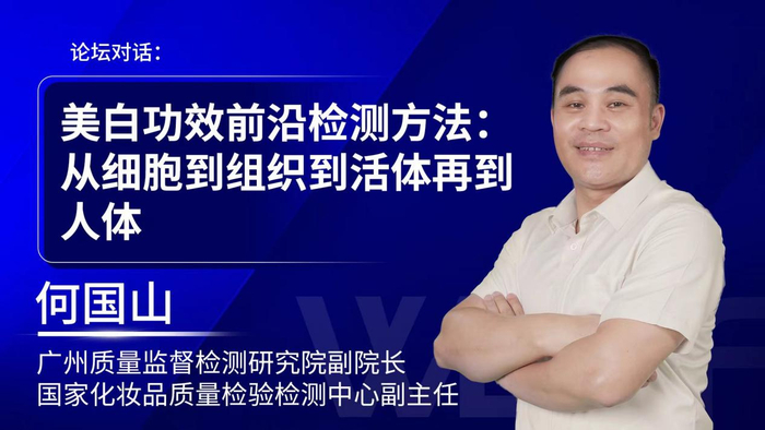 广州质量监督检测研究院副院长;国家化妆品质量检验检测中心副主任何国山带来《美白功效前沿检测方法:从细胞到组织到活体再到人体》的主题演讲,聚焦美白功效前沿检测方法,分析功效下美白标准流程,多个维度探寻检验最新科技动向。
