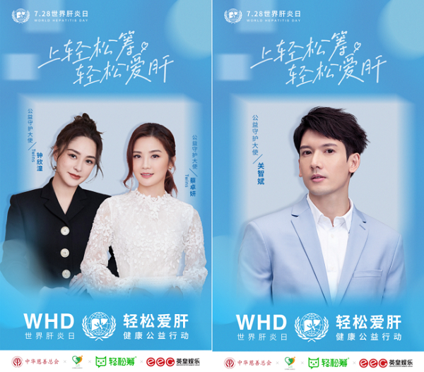 值此第十二个世界肝炎日,作为“轻松爱肝健康公益行动”的公益守护大使,谢霆锋、容祖儿、蔡卓妍、钟欣潼、关智斌等艺人,再次加入公益活动,号召全社会杜绝肝病歧视,关爱肝病患者,呼吁人们应该规律作息、保证睡眠、均衡饮食、定期体检,以实际行动减少肝脏的负担,享受一段健康舒适的人生旅途。