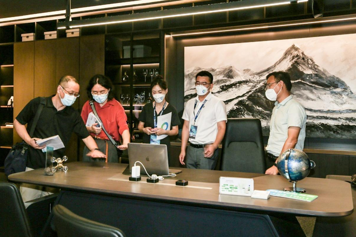 与智能语音和人工智能领域全球领先的科大讯飞合作,圣奥科技让昂蒂那搭载智能语音互动系统,实现询问天气、查询航班、播放音乐、设置闹钟等语音指令,提供“AI+办公”的新型空间解决方案,并通过内置3D手势传感模块,实现无接触式手势传感升降,创新人机互动模式。