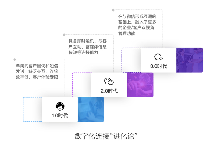自从4S店的网电销模式出现以来,从单向的“打回访”“发短信”,到借助微信实现与客户的双向互动,再到利用企业微信与微信的打通,建设更可控的客户连接环境,汽车经销商的数字化营销方式历经了三个时代。如何利用微信的信息通路连接其背后的生态用户,也早已成为了几乎所有To C企业的最重要课题。