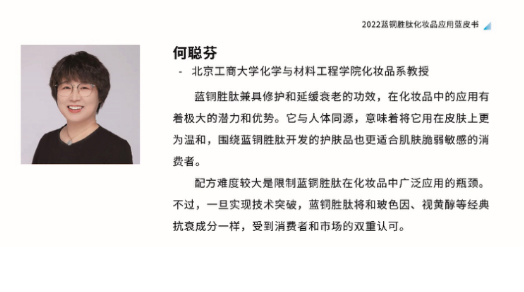 第四、第六章则重点关注蓝铜胜肽成分在化妆品中的应用现状以及未来的发展趋势。