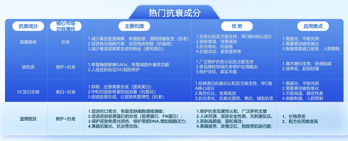趋势二:蓝铜胜肽的抗衰能力不输玻色因、视黄醇,将成为下一代明星抗衰成分。
