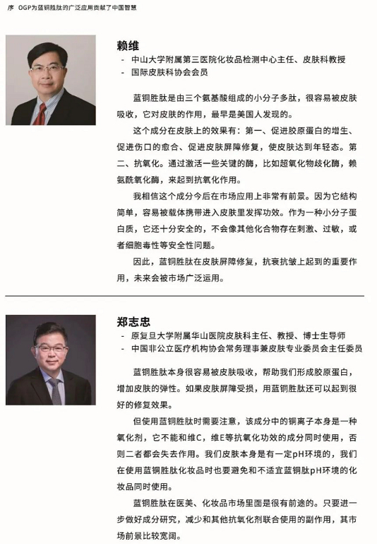 关注蓝铜胜肽成分基础研究!OGP出了一本蓝皮书