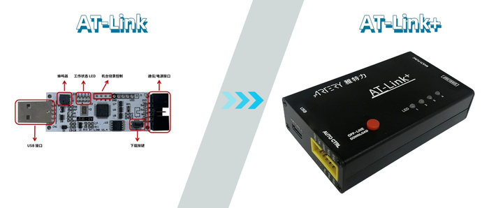 AT-Link+在延续与升级AT-Link功能的同时,也在外观上做了很大的改变。新一代AT-Link+采用黑色磨砂质感外壳,大大提升了使用手感和操作便利性,具有兼容性强、人机交互方便、多种下载模式、拓展功能强等优势。