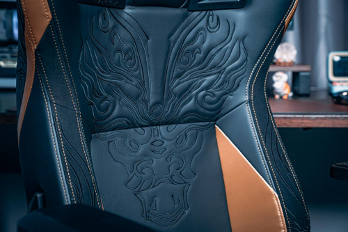 在椅背设计上,凯诺克斯 K8005K 永劫无间岳山定制款电竞椅加入了专属游戏联名LOGO,高密度的刺绣图案色泽鲜艳逼真,充满轻奢感的高档PU皮革包裹着整个后背支撑系统。通过类似人体腰脊椎支撑的一体化靠背可以根据玩家玩游戏时最舒服坐姿进行调整,均匀分配受力,再配合坐垫前后调节以适应不同玩家体型,进而促进血液循环,减少久坐压力。