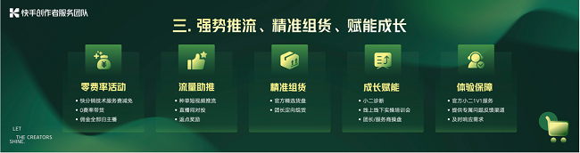 同时,针对创作者内容创作能力强但缺乏货品供应链的情况,快手电商推出了人货匹配的SAAS工具快分销平台,通过引品牌货以及优质产业带商品,为达人提供丰富的货品供应。针对创作者电商运营经验缺乏的情况,快手电商的服务商体系也将可以提供有效助力。