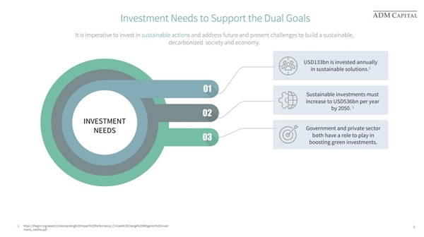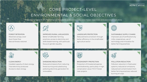 最近ADM资本进行了一个全球性的问卷调查,调查发现林业和农业领域的投资能对现实世界产生重大影响,虽然距离我们将全球温升控制在1.5摄氏度的目标还有一些差距,但是专注于自然解决方案的投资平均每年能吸收320万吨碳排放,被投企业能每年减少6.4%的碳排放。除此之外,在减碳的过程中,会创造很多工作机会,据世界劳工组织预测,在坚持1.5摄氏度温升的控制下,到2030年前我们将净创造1800万个就业岗位。