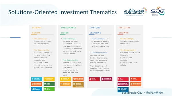 在投资主题上,KKR的全球影响力基金主要关注气候行动、可持续生活、终身学习及包容性增长四大主题。基于今天的分享主题,杨姗女士重点介绍了气候行动和可持续生活两大主题下的投资实践。