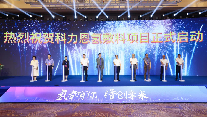 研究院的联合发起成立单位——科力恩新材料有限公司的董事长周锋在致辞时表示:“即将在研究院孵化出历时 5 年研发的纳米储氢生物膜,凭借更高效、更安全、更自然的自体细胞再生技术优势,将有望打破国外对敷料行业卡脖子的局面。”随后,科力恩新材料有限公司董事长周锋、长三角氢健康发展研究院院长马雪梅、原海军军医学大学教授孙学军、上海莲森实业集团董事长马献平、浙江省经信厅消费品工业处二级调研员刘伟龙、浙江省药品监督管理局化妆品检验研究所所长程巧鸳、丽水市科协主席邝时忠、丽水市科技局副局长沈一峰、缙云县人民政府县长王益、缙云县副县长张宗渭共同启动了科力恩氢敷料项目!
