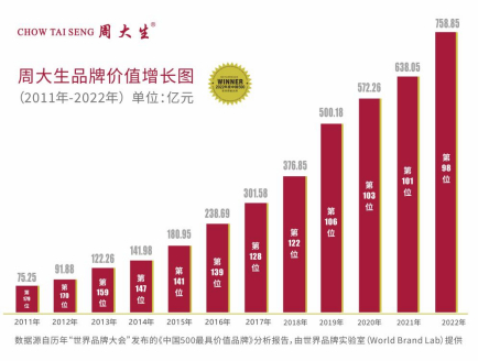重磅丨周大生珠宝品牌价值超758.85亿元!再获中国500最具价值品牌