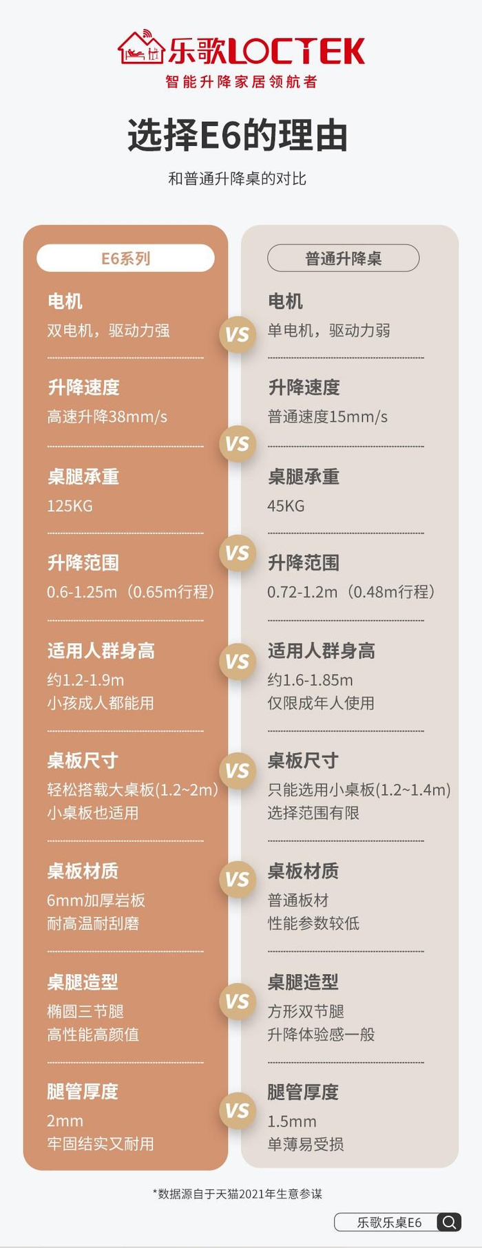 相对于市面上其他升降桌,乐歌智能升降桌E6的各种性能上都有碾压性优势。