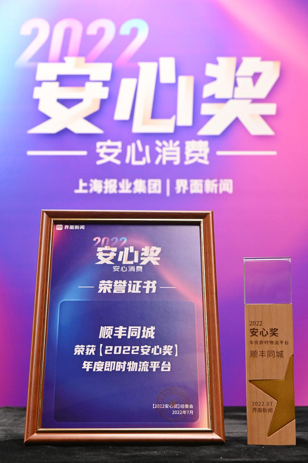 国内最大的第三方即配平台顺丰同城荣获界面新消费2022安心奖