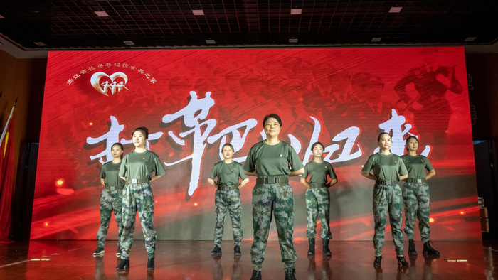 “风展红旗映彩霞,愉快的歌声满天飞......”7月28日下午,湖州市长兴县太湖街道文化礼堂响起了清越嘹亮的《打靶归来》,这是由全国优秀退役女兵代表周映雪带领的“退役女兵之家”文工团,为庆祝“中国人民解放军建军95周年”献上的一首红色赞歌。