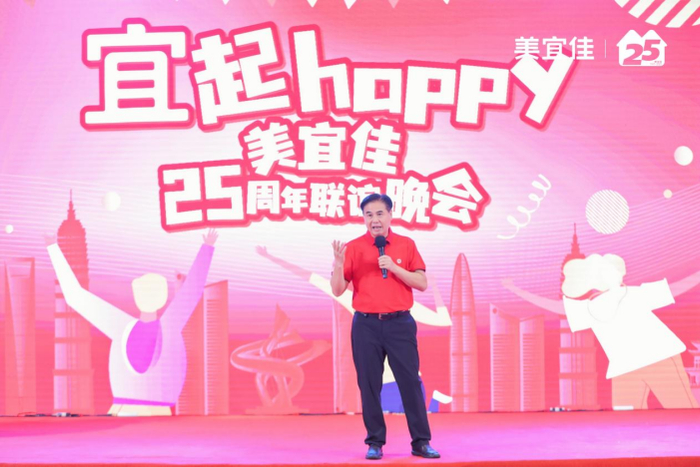 集团总裁兼美宜佳董事长张国衡在晚宴致辞中表示未来将与各位合作伙伴继续携手,务实专注、真诚合作、创新共赢,共同开创美宜佳美好的未来。张董指出,25年美宜佳实现了从区域化到全国化的转变;美宜佳优选APP的正式发布集结了从B端到C端的接触点的转变;美宜佳星星榜的发布标志着美宜佳从信息化到数字化的转变,贯通全国门店消费者数据,以便更好服务顾客,精准做营销以及为品牌方整合资源。一直以来,美宜佳坚持打造共享平台理念、坚持共赢理念,搭建运营体系,打通生产链条为供应商赋能。最后,张董表示期待美宜佳创造一个更好的未来,为达成这个期许,需要时刻不忘感恩,始终保持创业激情。