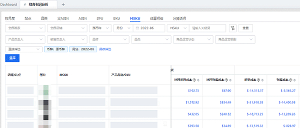 财务和销售人员可以按月度、站点、品类、父ASIN、ASIN、SPU、SKU、MSKU等维度进行结算,快速对平台收入及支出项进行汇总分析,无需人工统计计算,便可自动获取每个产品的销售毛利率、销售净毛利率及ROI,为财务账目提供详细数据,有助于卖家对症优化,提高利润。