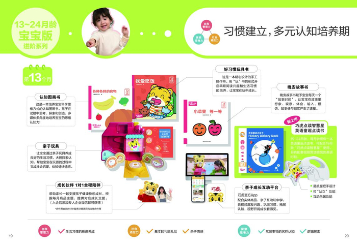 孩子的健康成长与家庭教育息息相关,但当下,许多家长面对市场上林林总总的早教产品难以取舍。自创立以来,巧虎致力于将科学早教带给更多的家庭,既提升养育者的早教意识,也用科学的知识和技巧缓解育儿焦虑,提高育儿质量,助力孩子们健康快乐地成长。为此,巧虎乐智小天地早教商品持续升级,为中国家庭提供实用性的亲子育儿方法和有价值感的商品和服务,为亲子成长提供有效支援。