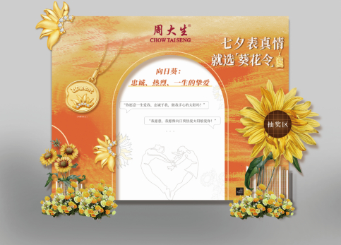 以“葵花令”传递真挚爱意,出其不意的七夕限定浪漫,让情侣们体验不一样的节日。令人惊喜的是为营造节日浪漫氛围,周大生珠宝在线下门店打造专属七夕的向日葵花墙,提供了更为沉浸化、差异化的七夕示爱体验,满足年轻消费者仪式感、个性化的诉求。活动期间只要在向日葵宣誓区许下“我这一生都将爱你,忠诚于你”的爱情诺言,让向日葵见证你与TA之间浪漫的爱,参与趣味指令互动,不仅能够创造专属于你们的甜蜜记忆,共赴一场独一无二的浪漫之旅,还可参与向日葵惊喜抽奖获得惊喜好礼。