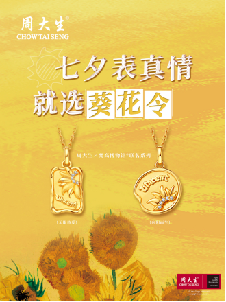 蕴含中国传统文化底蕴的七夕情人节即将到来,在这个中国最具浪漫色彩的传统节日,比起玫瑰巧克力,象征“忠诚、热烈、一生挚爱”的向日葵更是让人无法拒绝的礼物。周大生珠宝特推出梵高博物馆联名等多款24K金镶钻向日葵链牌,更是为情侣倾情打造“七夕表真情,就选葵花令”的趣味互动活动,充分理解当下年轻人追求新奇的心理,创造符合当下年轻人特立独行的示爱体验。
