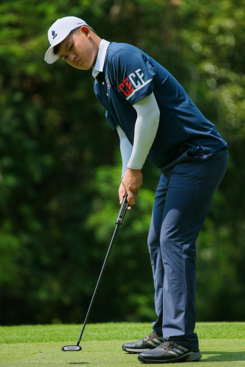 来自广东省队的17岁男孩邓韬,首次代表蓝队出战,与红队队长张连伟进行激烈对抗,在中国高尔夫一哥张连伟前辈的引领下,打出两天-13,15鸟的优异成绩,在第一天的个人比杆赛中以68杆获得个人总杆冠军。