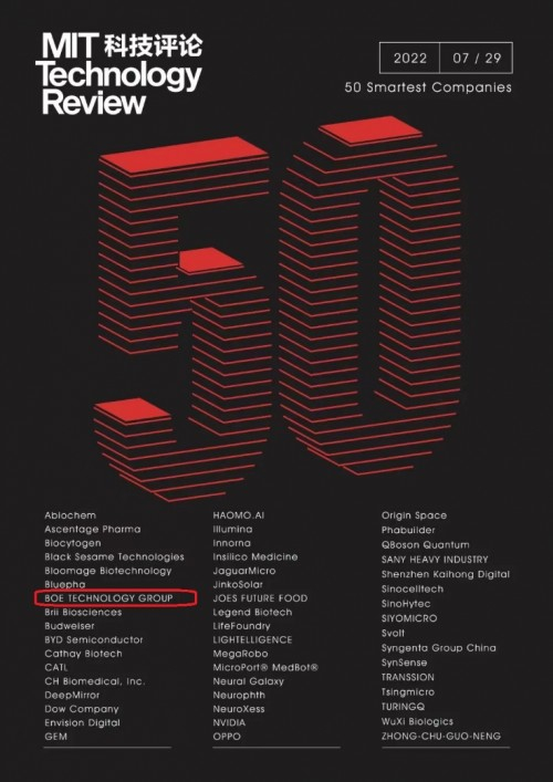 BOE(京东方)再次入选《麻省理工科技评论》“50家聪明公司”
