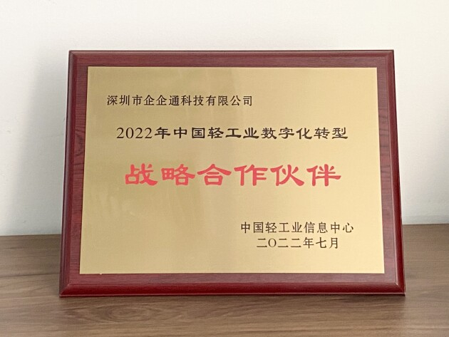 重磅 丨 企企通入选2022年度「中国轻工业数字化转型战略合作伙伴」