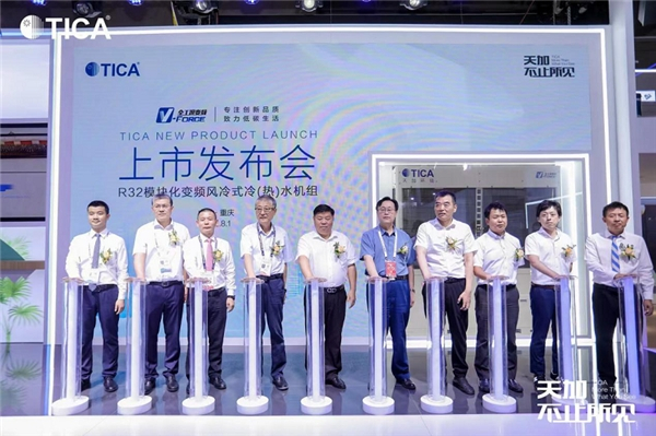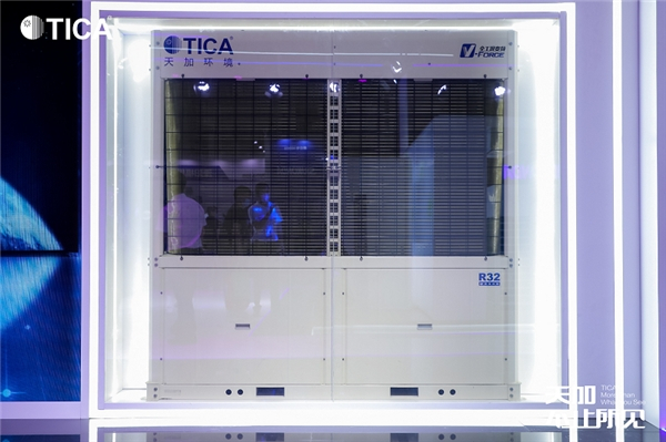 本次发布会正式公开亮相的R32模块化变频风冷式冷(热)水机组,是天加在双碳目标背景下研发出的一款环保冷媒变频模块机产品。该产品利用ODP为0、GWP更低的R32环保冷媒,结合天加20年模块机研发经验,可做到全工况运行、全变频节能和全场景适配,技术优势遥遥领先。