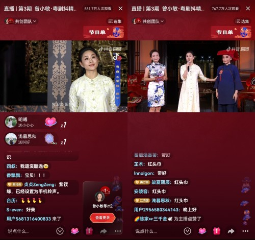 无论是通过抖音短视频和直播来推广粤剧,还是通过创新创作粤歌来普及粤剧,曾小敏一直致力于传承传播粤剧文化。曾小敏表示,能够把自己所爱好的作为一生的事业去做,是最幸福的。在整场节目中,戏迷随处可见曾小敏的这份执着和热爱,纷纷点赞打赏、留言:“文武双全的姐姐”“开口跪”“一秒入戏好犀利”。最终,节目在曾小敏携手众多青年演员演绎的粤歌《此生最爱是梨园》中完美谢幕,看播人次超过2200万。