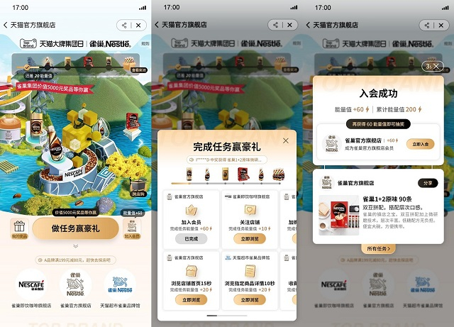 1、10大任务设计,帮助引导用户主动触发品牌深度交互,提升集团人群跨店铺流转;