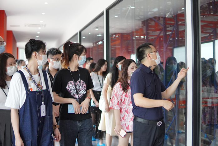 此次探厂,福贝创始人/董事长兼总经理汪迎春先生百忙之中来到活动现场,客串了一把“解说员”,热情并细致地向来访人员介绍福贝4.0智能工厂的各个版块的功能。